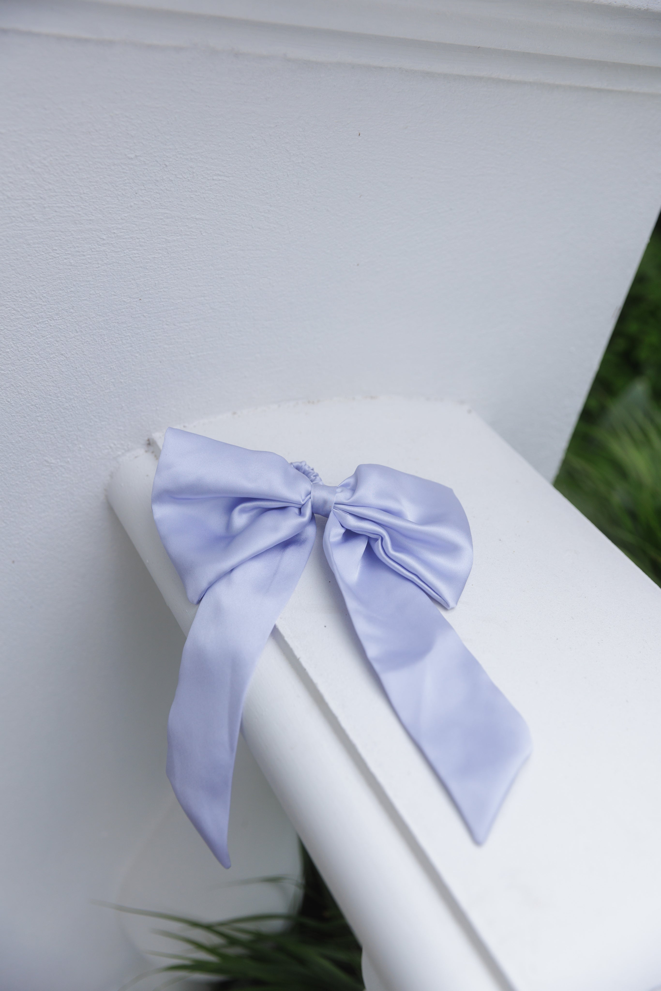 Luxury 100% silk handmade hair bow attached to a neat silk hair scrunchie that sits beautifully in the hair, whether it's down or up this is the perfect day to night or wedding hair accessory.