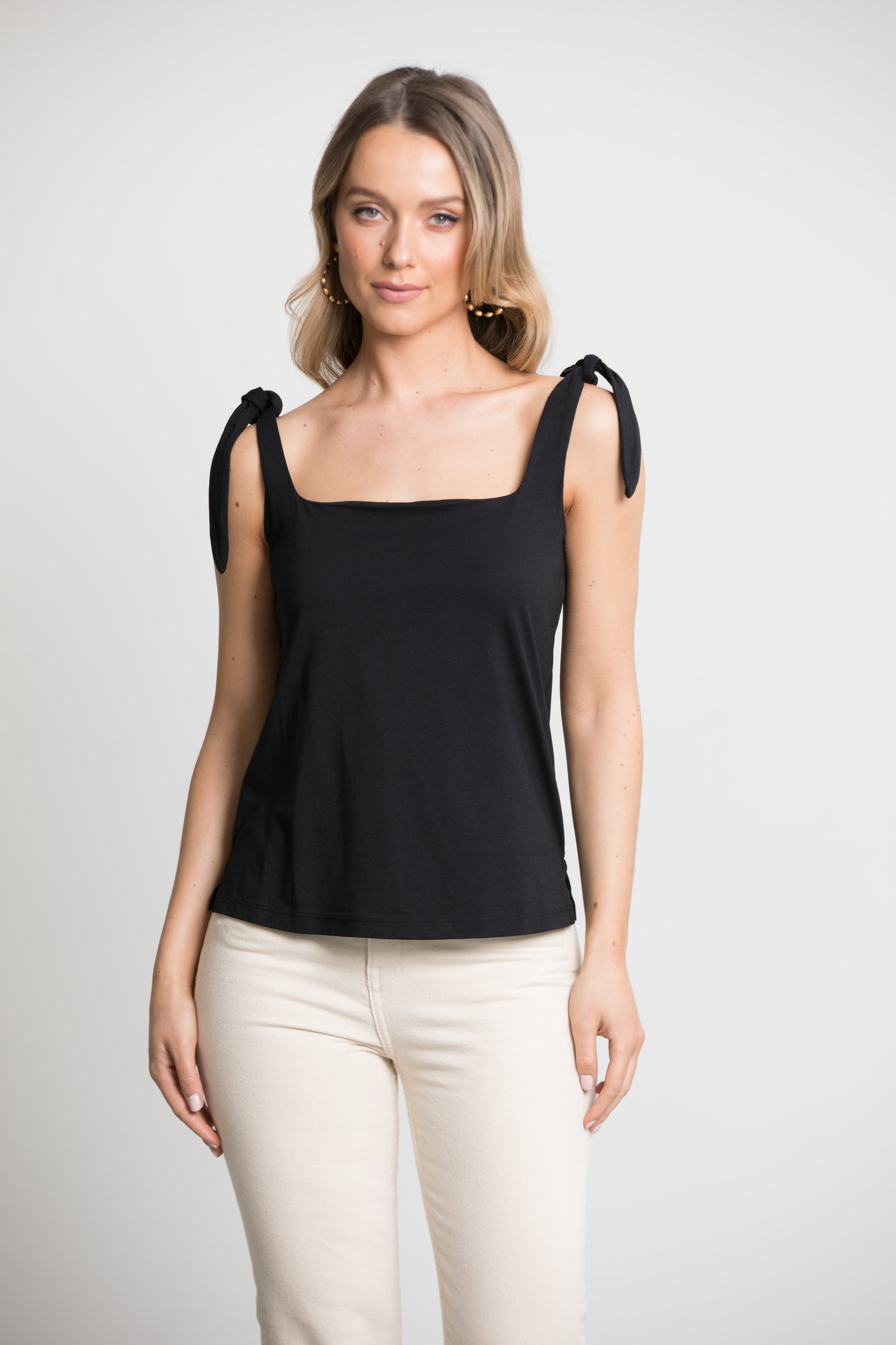 "The Ellen" - Square Neck Top with Bow Detail (Black)