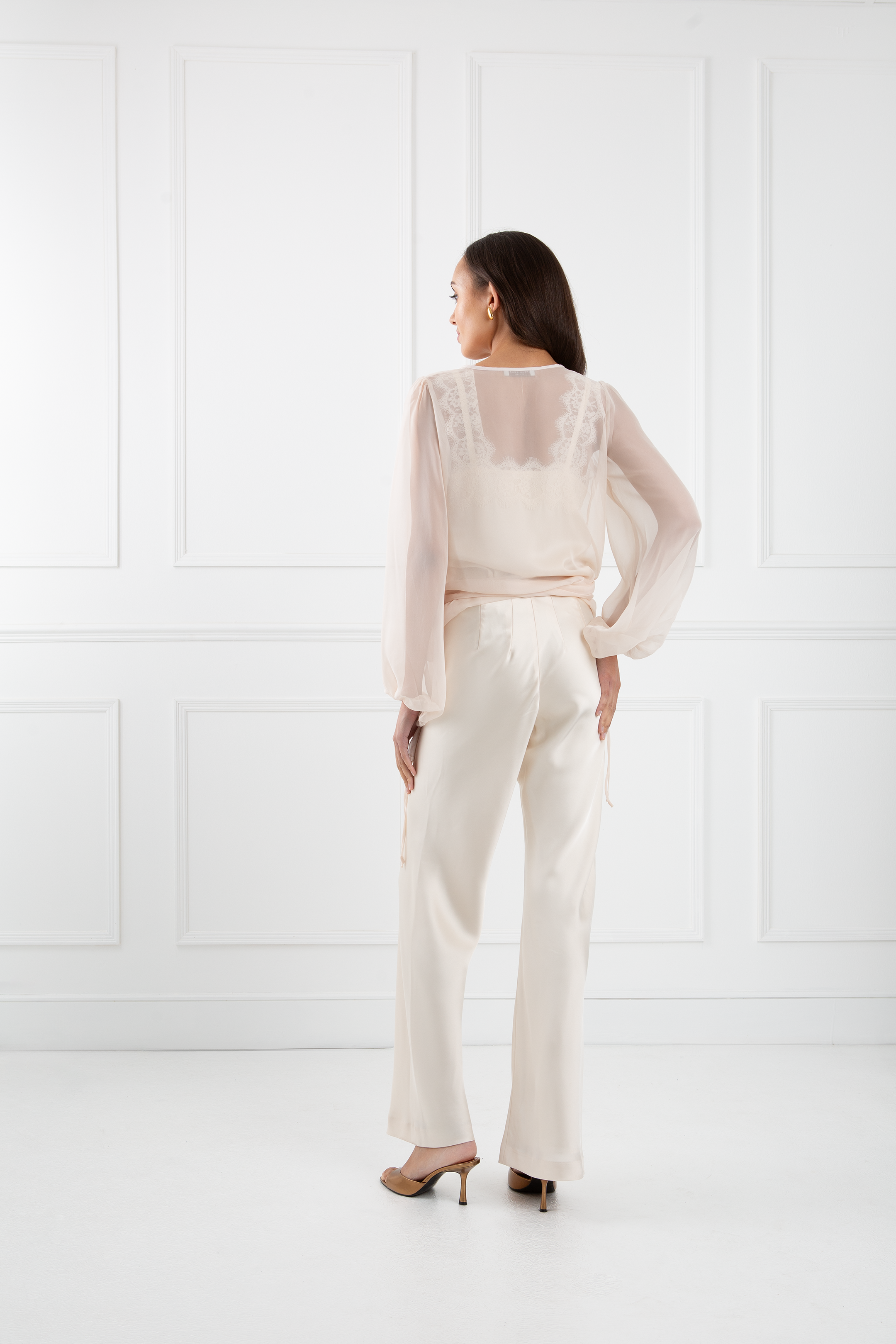 The ultimate elevated wardrobe hero and favourite style of Designer Sinead Keary. The Jenny wrap blouse is a beautiful sheer fabric that drapes and wraps beautifully around the body in the most flattering way. The exaggerated sleeves add a bohemian finish and edge taking your basics to the next level.