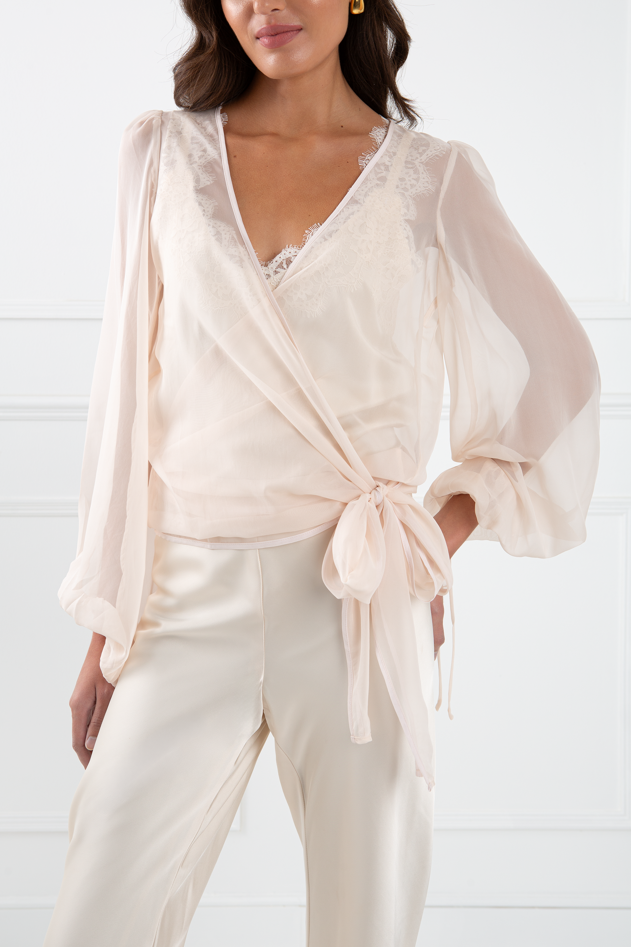 "The Jenny" - Sheer Wrap Blouse (Champagne)