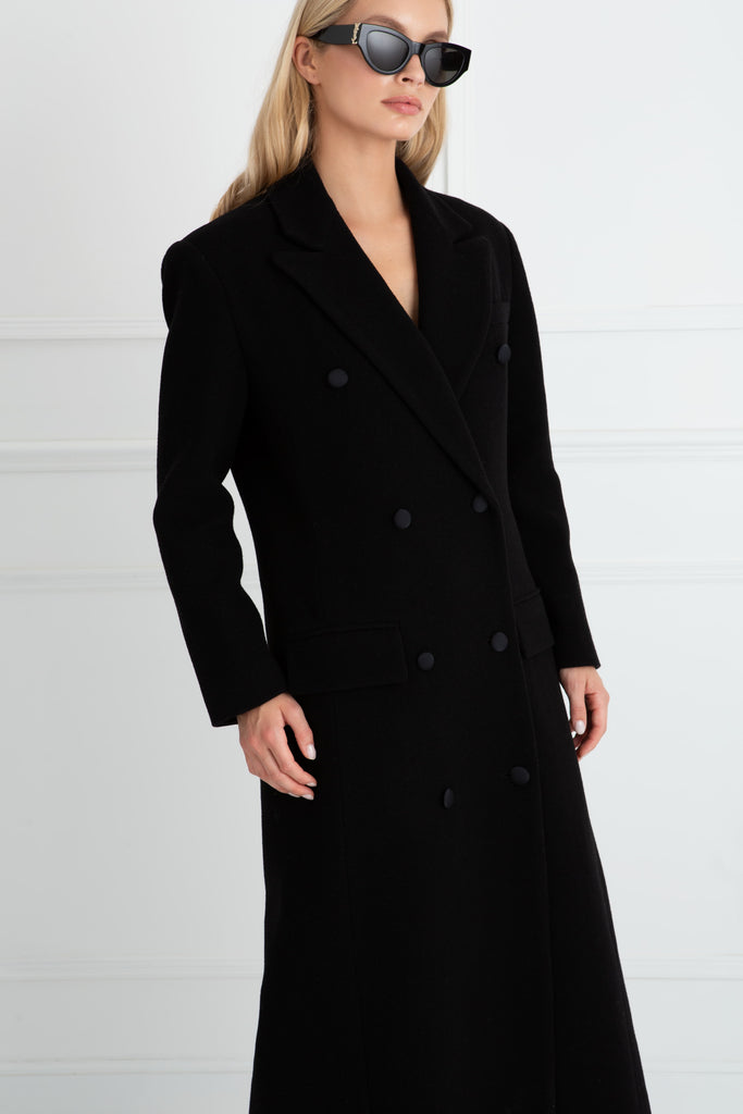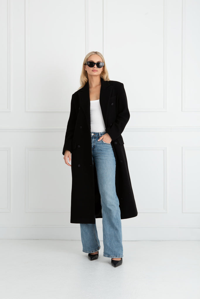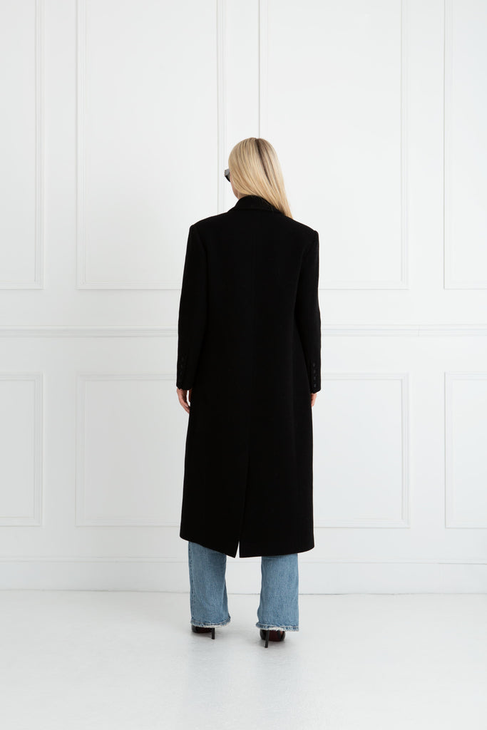 Crafted from 100% premium wool, The Jessica is tailored with precision to shape the body beautifully while leaving enough room to layer with your favourite winter knits. The double-breasted design, enhanced with satin-covered buttons, adds a touch of sophistication, while the structured fit, complete with shoulder pads, provides a refined silhouette. Featuring a chic chest pocket, front flap pockets, and a sleeve button placket, this coat is as functional as it is stylish. The longline length and back vent ensure ease of movement and effortless elegance, making it perfect for both casual and formal occasions.