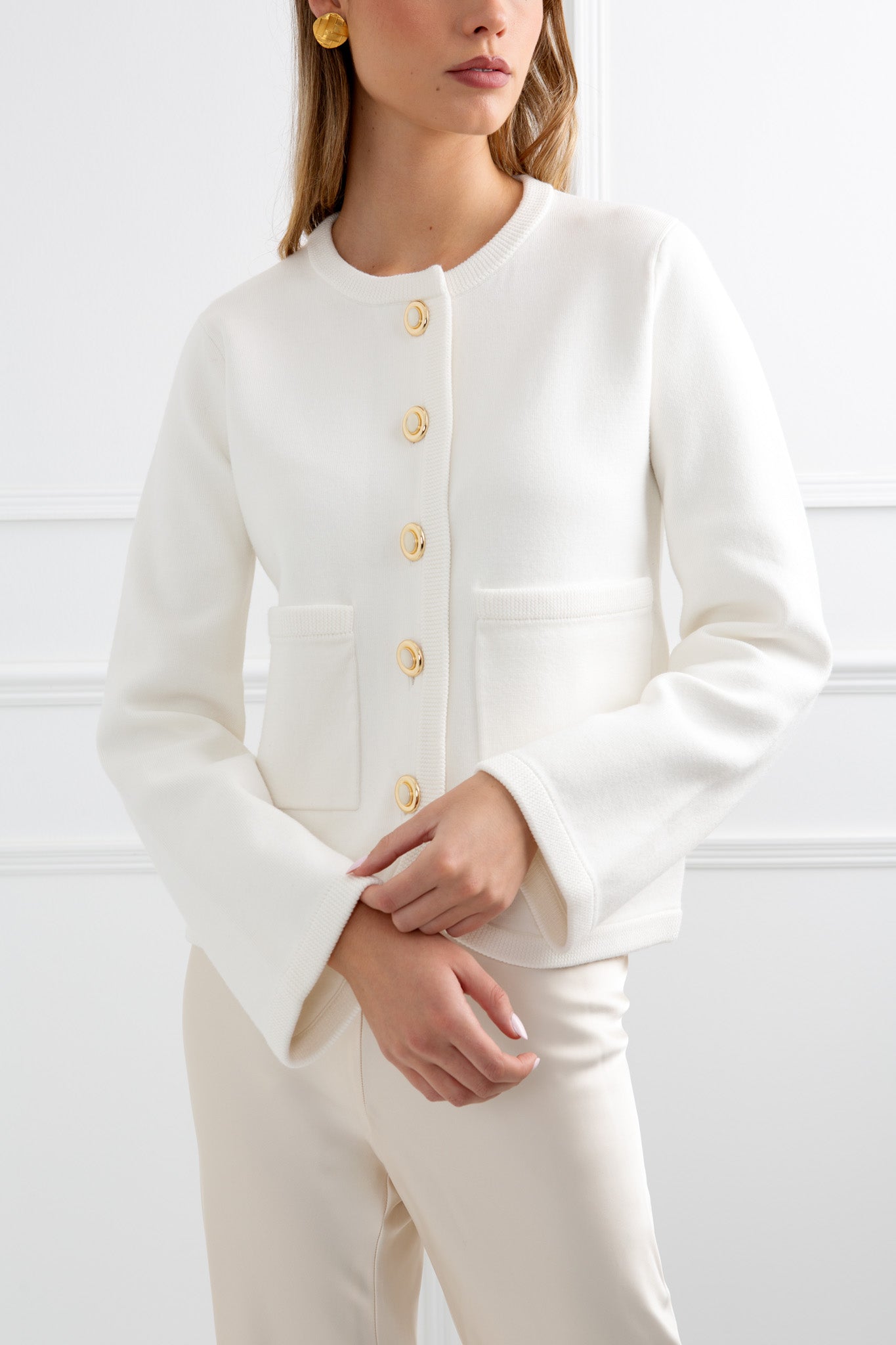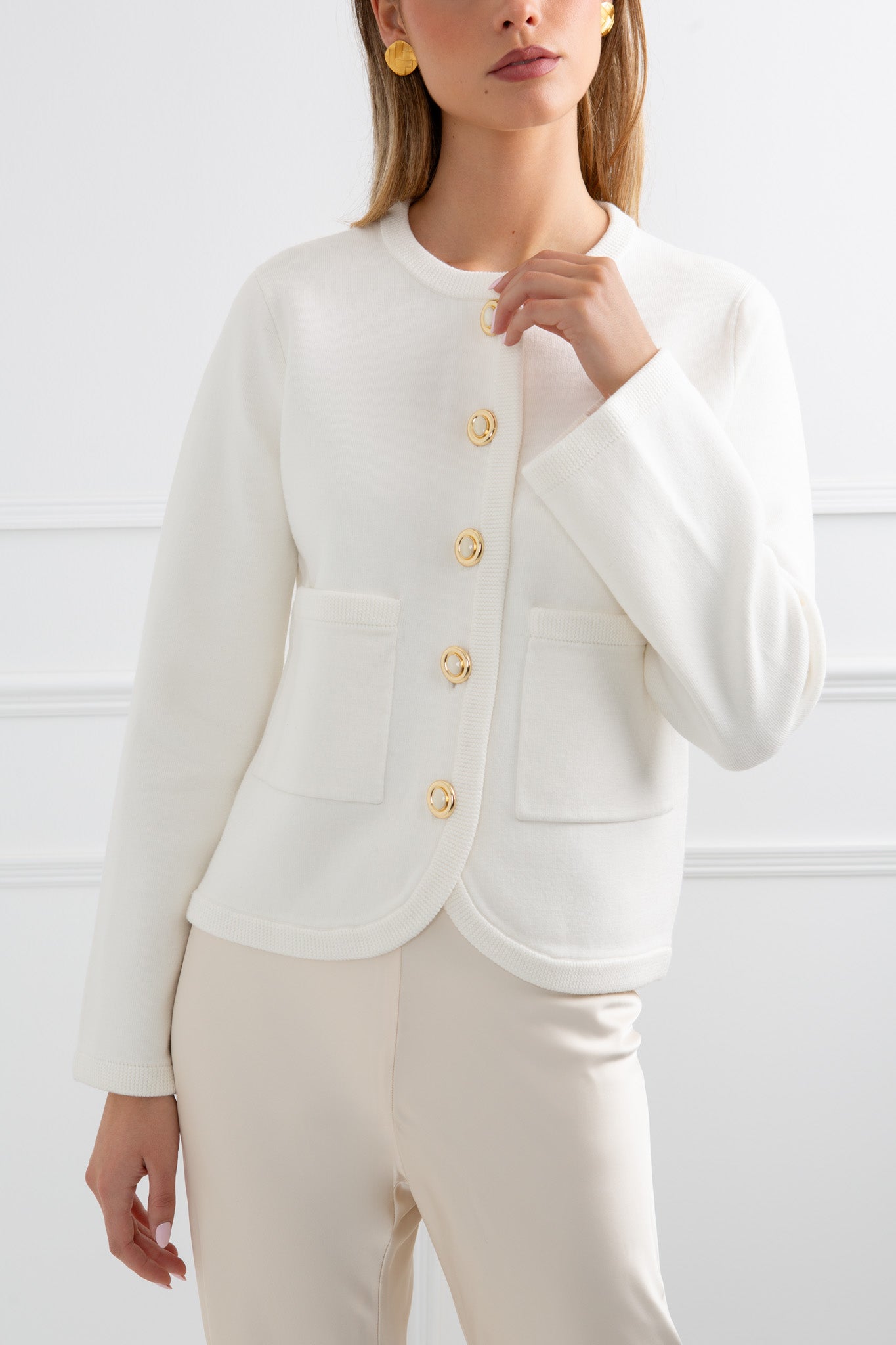 - Cream structured knit cardigan